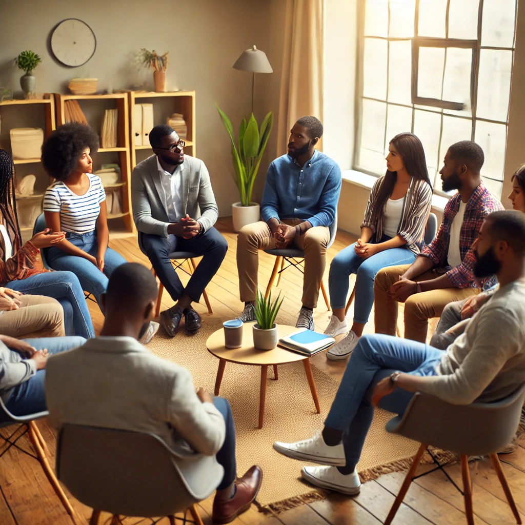 Suggested Image: A diverse group therapy session where participants are engaged in discussion and support.